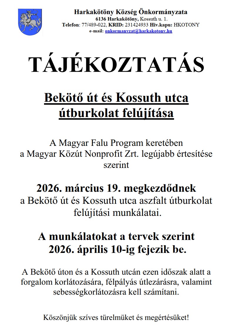 HARKAKÖTÖNY KÖZSÉG ÖNKORMÁNYZATA